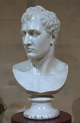Canova did not often make straightforward portraits, as he felt the genre required the artist merely to imitate nature rather than to create a work of his own imagination. Nonetheless, despite his distaste for the military commander who had overthrown the Venetian Republic and stolen masterpieces of Italian art, Canova could not turn down the commission from Napoleon when he was still First Consul of France, near the height of his meteoric rise to leader of the country. When Canova arrived in Paris in October 1802, he had several sittings with Napoleon, resulting in a bust-length clay model for a work that he intended to incorporate into a monumental depiction of the leader in the mythological guise of Mars, the Greek god of war, as a peacemaker. Although the clay original is now lost, there are two plaster versions that Canova probably made from the model, both showing the sitter wearing a high-collared jacket. In order to portray Napoleon as a heroic Greek god, however, the artist insisted that he appear nude, as subsequent marble versions of the bust indicate. This version, measuring over two feet high, was probably executed entirely by Canova, and is said to have remained in his possession until his death. Indeed, this portrayal of Napoleon became so popular that over forty copies of the bust were made during Canova's lifetime, many of them without the artist's involvement.