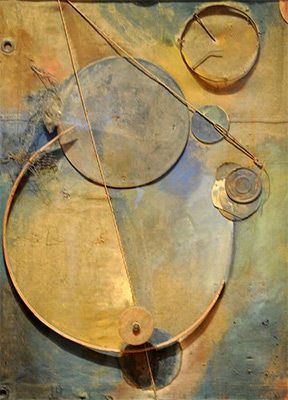 Oil, rusted steel, laminate, enamled tin, butterfly, paper, cork, and china, mounted on board - The Solomon R. Guggenheim Museum, New York